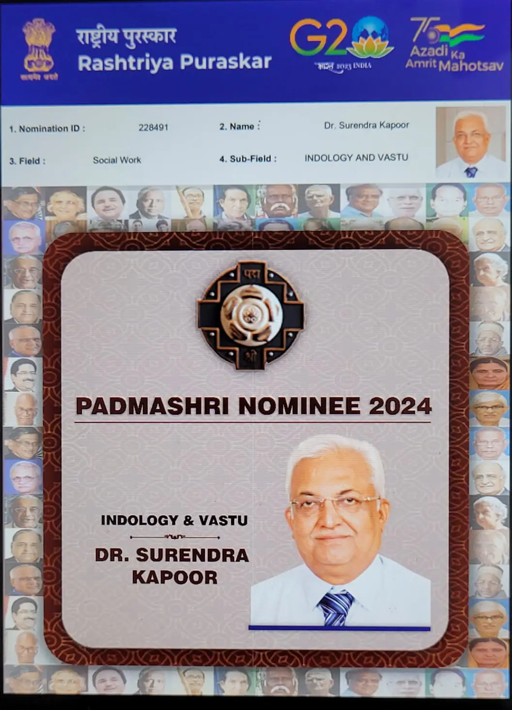 Surendra Kapoor aged 72 years is a leading light in the field of Vedic Jyotish, Vastu Shastra, Aura Reading, Naming Names and Dream Interpretation. A Padamshree nominee, he is a voracious reader, multi linguistic, multitalented holistic personality and an experienced counselor.